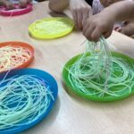 2025年9月4日 / 最終更新日時 : 2025年9月4日 pagekanri 今日の一日 今日の子育て広場 今日は久しぶりに過ごしやすい天気でしたね。 お部屋では、食紅で色を付けた春雨を用意しました。 つまんだり引っ張ったり、少しずつ慣れてくると掴んだりして、ツルツルした感触を楽しんでいました。 テラスでは水遊び。 とは言って […]