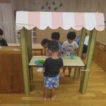 2025年10月3日 / 最終更新日時 : 2025年10月3日 pagekanri 今日の一日 どれにしますか~? 店員さんになりきる姿があるので、桃組のお部屋にカフェを作りました🍹 「どれがいいですか~?」とメニュー表を見せたり、 「ちょっと待っててください」と、サーバーでジュースを入れたり。 お客さんは「りんごジュースください」「 […]