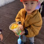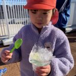 「見てーアイスクリームみたいでしょ!」と色氷のかけらを重ねて自分好みのものを作ってました♪