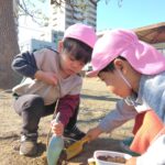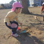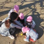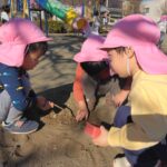 「砂をどかしたらいいんじゃない?」と根っこの周りを掘ってみたり、「先生も手伝って!」と応援を呼んだりと試行錯誤、、、