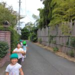 夏になる前に散歩に行っていた時は、歩き疲れて口数が少なかったり、足取りが重かった子どもたちですが、30分くらいのお散歩なんてなんのその!