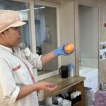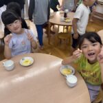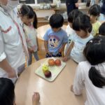 と給食の先生が、りんご(トキ、あきばえ、わせふじ、秋陽)を見せに来てくださりました!