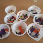 まだ折り紙が残っているので、連続切り(チョキチョキ✂)をしてみたり、他の物も作ったりして、ハサミを使っていきます♪
