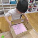 (こっちに箱を傾けると、こっちに転がって模様がつくのか!じゃあ次は反対側に傾けよう!)