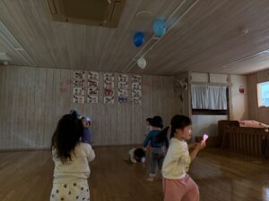 初めての経験だったため最初は、「ビー玉に絵の具をつけていいの?大丈夫?」と心配そうな子どもたち。