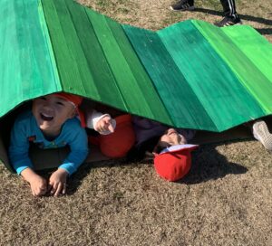 アイデアを出し合い、少しずつ長くなるモノレール。