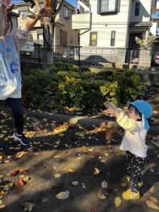 始めは優しく落ち葉を掛け合っていましたが、どんどんヒートアップ!ワーキャー言いながらの掛け合いに🤣🍂