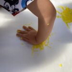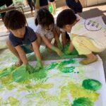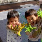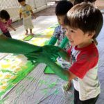 今回は手のひらに絵の具をつけて「先生、お花作ったよ〜🎵」と教えてくれたので