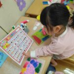 お友だちが文字を書いているから自分も書きたいという子がいたので保育者と一緒に書く子もいました。
