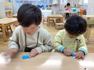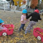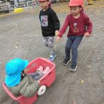 お友だちに引っ張ってもらったり、自分で引っ張ってみるともっと楽しいね🎶