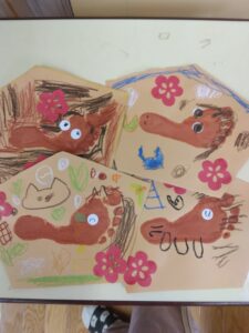 と会話をしたり、絵本を見たりしながら取り掛かります。
