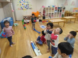 今後は少しずつ踊りや劇遊びなど通して表現する楽しさを子どもたちに伝えていけたらなぁと思っています。それに伴ってご家庭でよく踊る曲などあれば是非教えて下さい!子どもたちと一緒に踊ろうと思います!担任に声を掛けて下さい🎶