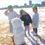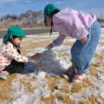 まだ芝生にはサクサクの雪ですがだいぶ残っていて、雪の上で鬼ごっこをしたり、雪だるまを作ったりしました♪