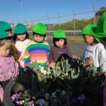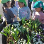 先日花壇の花植えをしたことを覚えていた子どもたち。