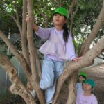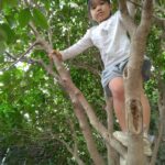 公園では鬼ごっこや遊具で遊んだり、枝や松ぼっくりを集めたりして楽しんでいましたが、前回ツリーハウスにしようとした木に「登りたい!」と言う子がいたので、今日はその木で木登りをすることに。