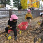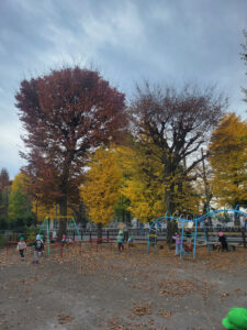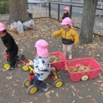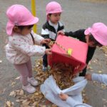 2025年11月25日 / 最終更新日時 : 2025年11月25日 pagekanri 今日の一日 遊びながら♪ 今日はひまわり遊園に遊びに行きました。各々好きな遊びをする桃組のお友達。 その中で遠くから何やら聞こえる「あっちにもある」「まだたーくさんあるよ」「出発ー」 何があるのかと近づいて見ると‥‥枯葉🍂でした。 この時期になるとひまわり遊園には枯葉がたくさん落ちています。 子どもたちも狭い道を通ったり、たくさん落ちている場所に進んだり遊びながら落ち葉拾いをしているのでとっても楽しそう。 そして、かごがパンパンになったら大きい袋に入れて完了♪ 今回は1袋でした。次は何袋になるかな?! FacebookXBlueskyCopy