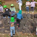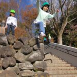 草地広場では、自分たちの身長より高い石垣をヒョイと登り豪快にジャンプ💨