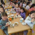 いつもは賑やかにお話しながら給食を食べますが、今日はみんな静かに黙々と食べていました…!