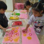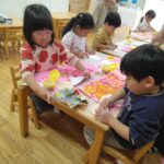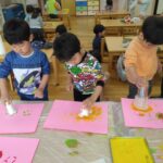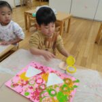 のり付けもバッチリ👌で、絵の具🎨ハサミ✂️のりを使った工程を楽しめるようになり、